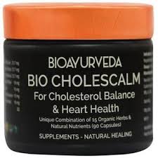 BIO CHOLESCALM Capsule is a unique combination of organic herbs and natural nutrients sources that is formulated to help reduce cholesterol and triglyceride levels. In addition to balancing cholesterol, it also improves blood circulation and clears blockages. It prevents oxidative damage to the heart and stabilises blood pressure. It strengthens heart function and boosts metabolism. It is beneficial as a cardiac tonic.